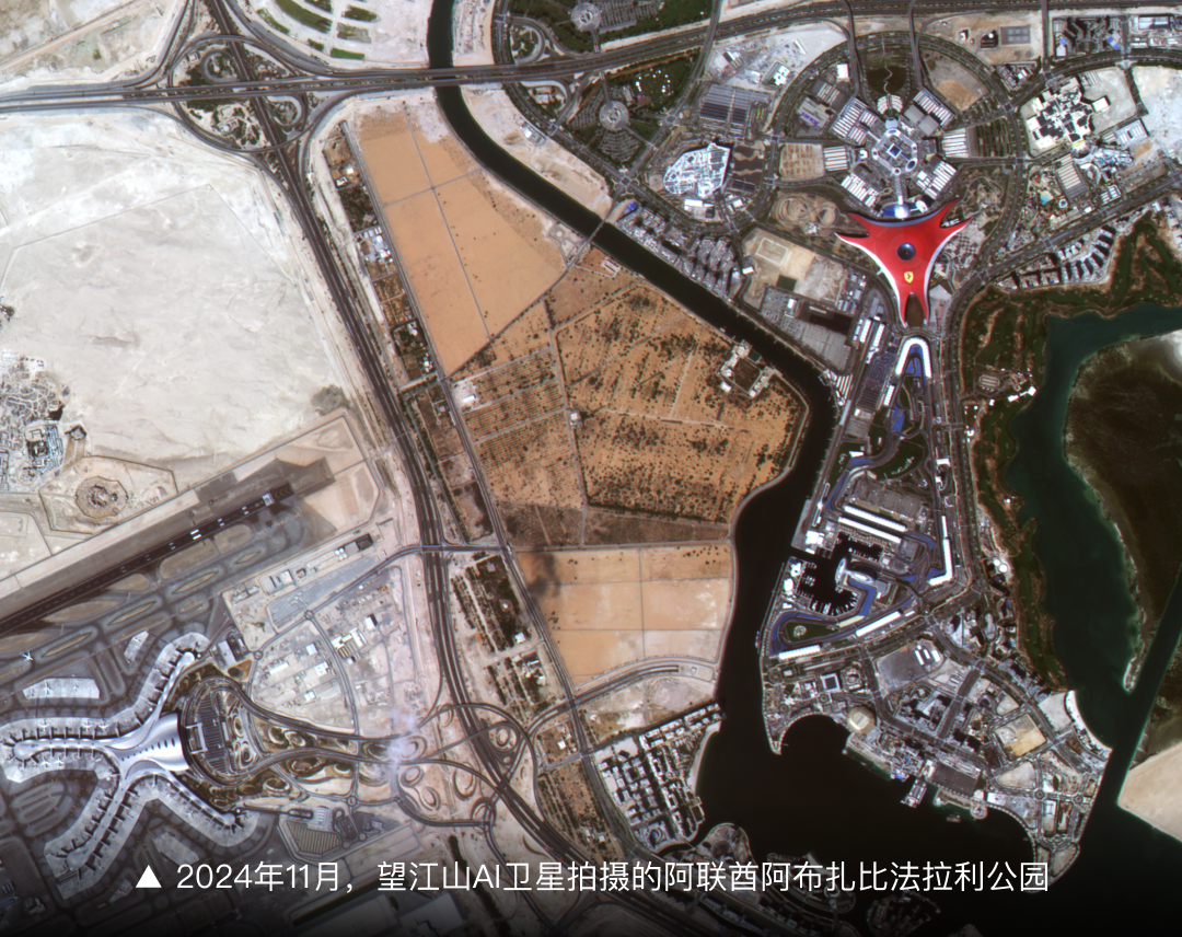 The OSE PNTRC-GF01 satellite also captured imagery of Ferrari World Abu Dhabi in the UAE. This satellite features not only high-resolution imagery (0.5m) and powerful real-time processing capabilities but also supports flexible adaptation to various mission scenarios. Its uncontrolled positioning technology stands out and has reached an industry-leading level.